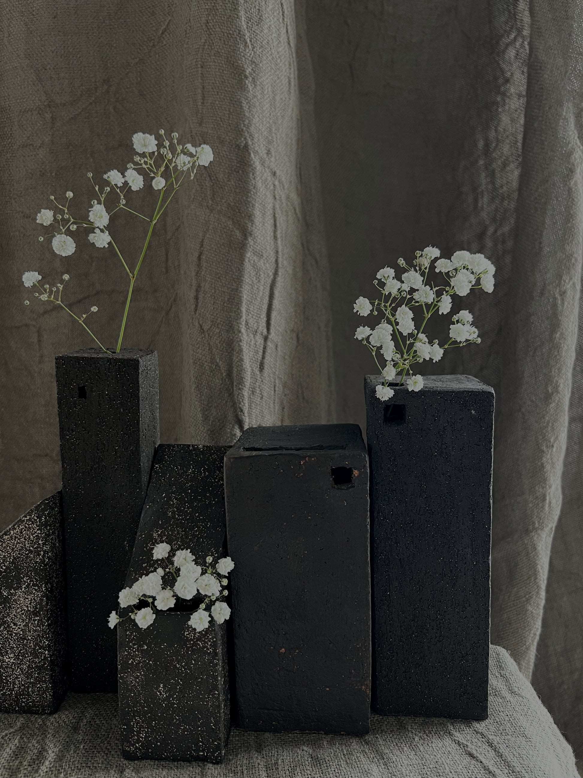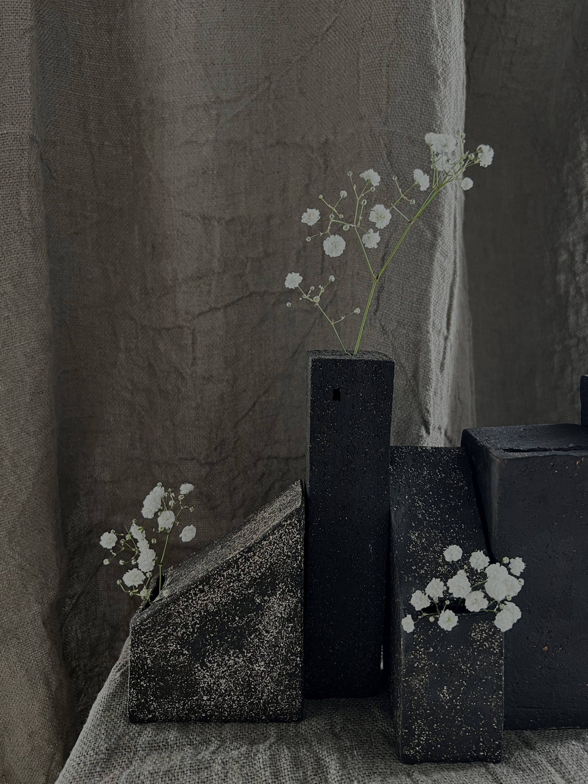 Black chamotte stoneware vase.